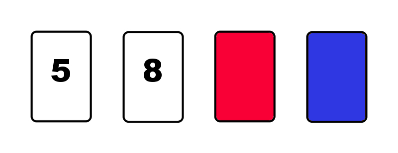 The visible faces of the cards show 5, 8, red and blue.